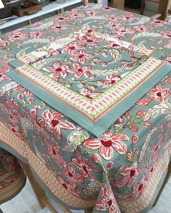 Indulge in the timeless beauty and sophistication of our Block Tablecloth. Designed with 100% cotton, hand block printed in an intricate design, this luxurious tablecloth adds a touch of elegance to any dining experience. Bring the art of block printing to your table and elevate your dining experience. Available in 9 designs and 2 sizes in most prints.