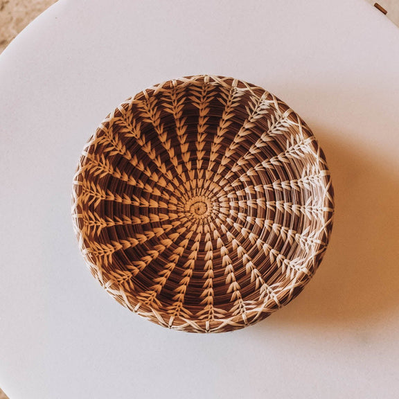 Indulge in the exquisite craftsmanship of the Cecilia Basket. This round, handmade wonder is crafted by skilled Mayan artisans, resulting in a one-of-a-kind piece that reflects a rich cultural heritage. Add this exclusive piece to your collection and elevate your home décor to new heights. 8" diameter, 1.5" high